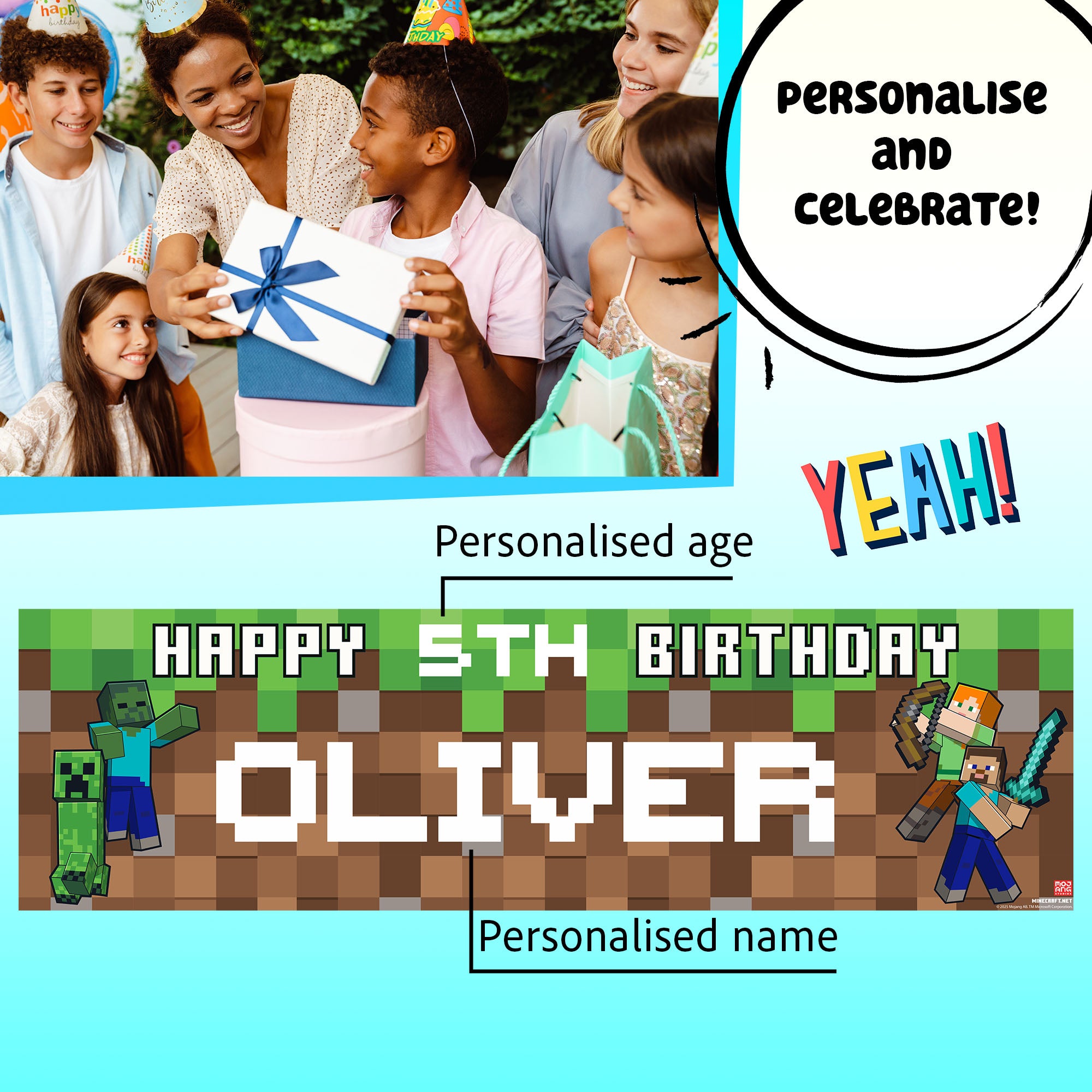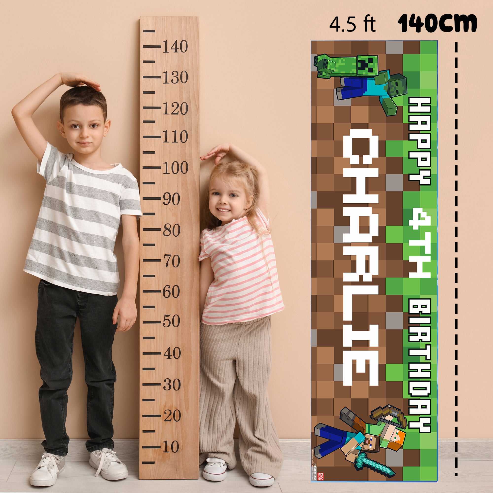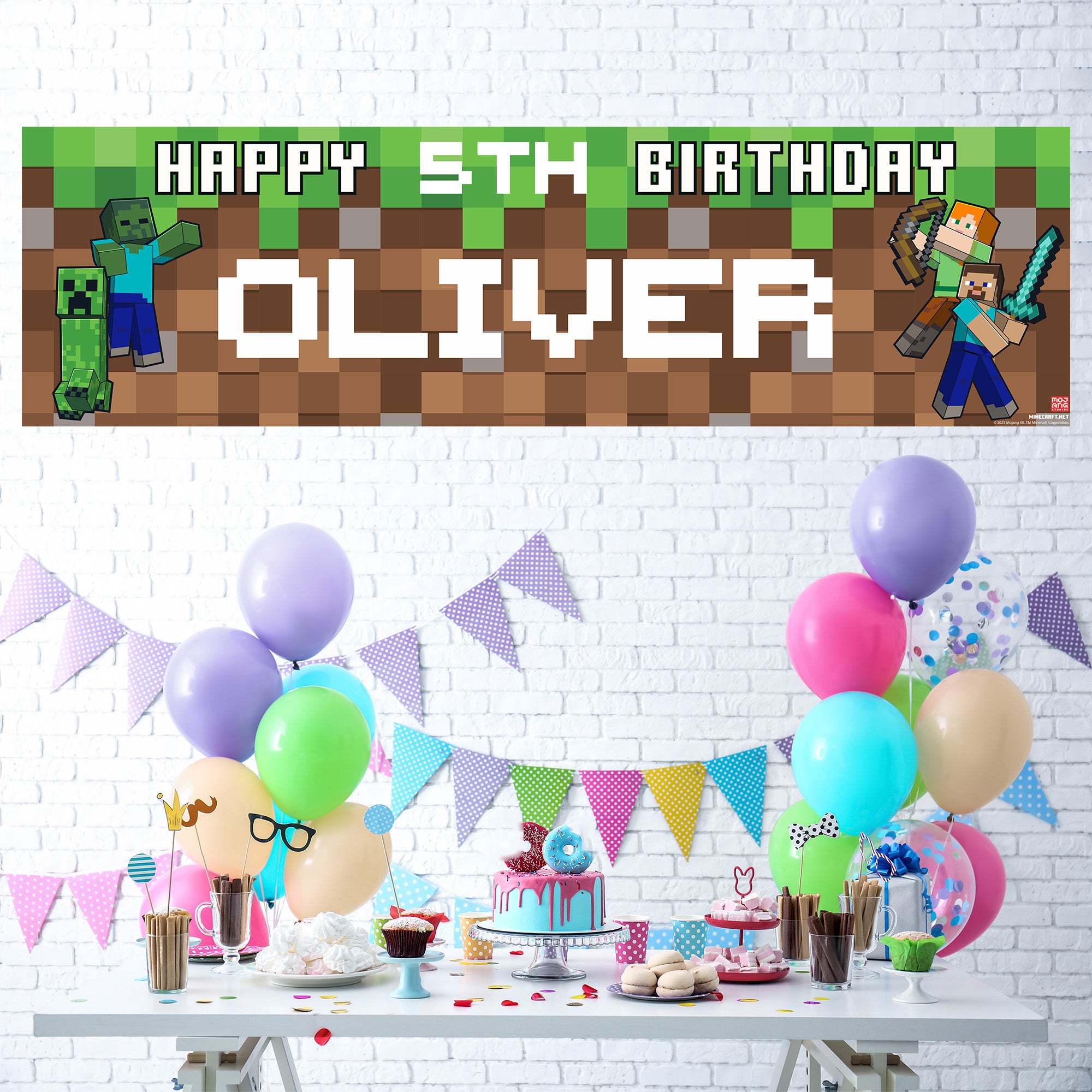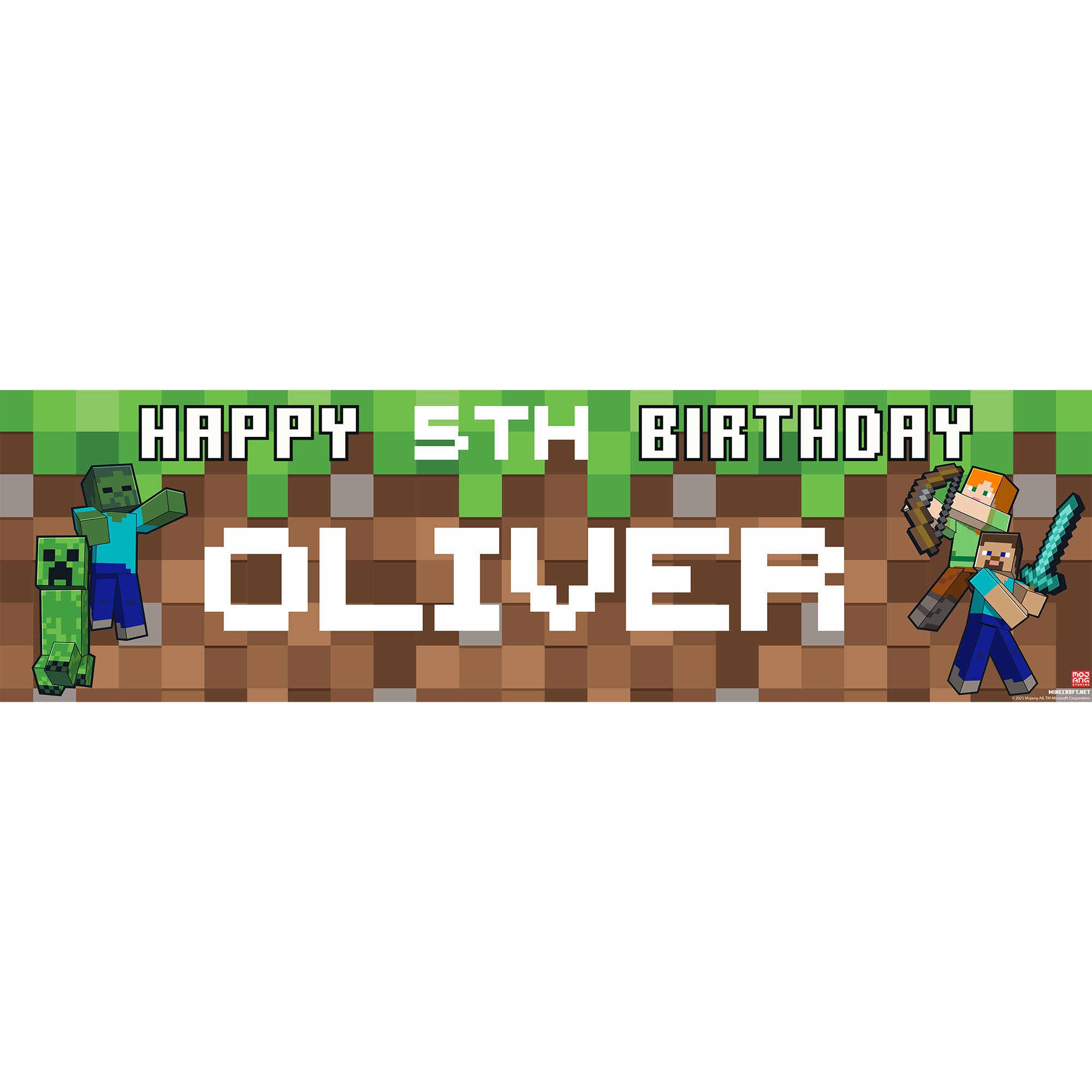 Minecraft Personalised Birthday Banner for boys – Custom Name and age Party Decoration, Large 4.5ft x 1.3ft (140cm x 40cm), Minecraft Theme Party Backdrop for Kids