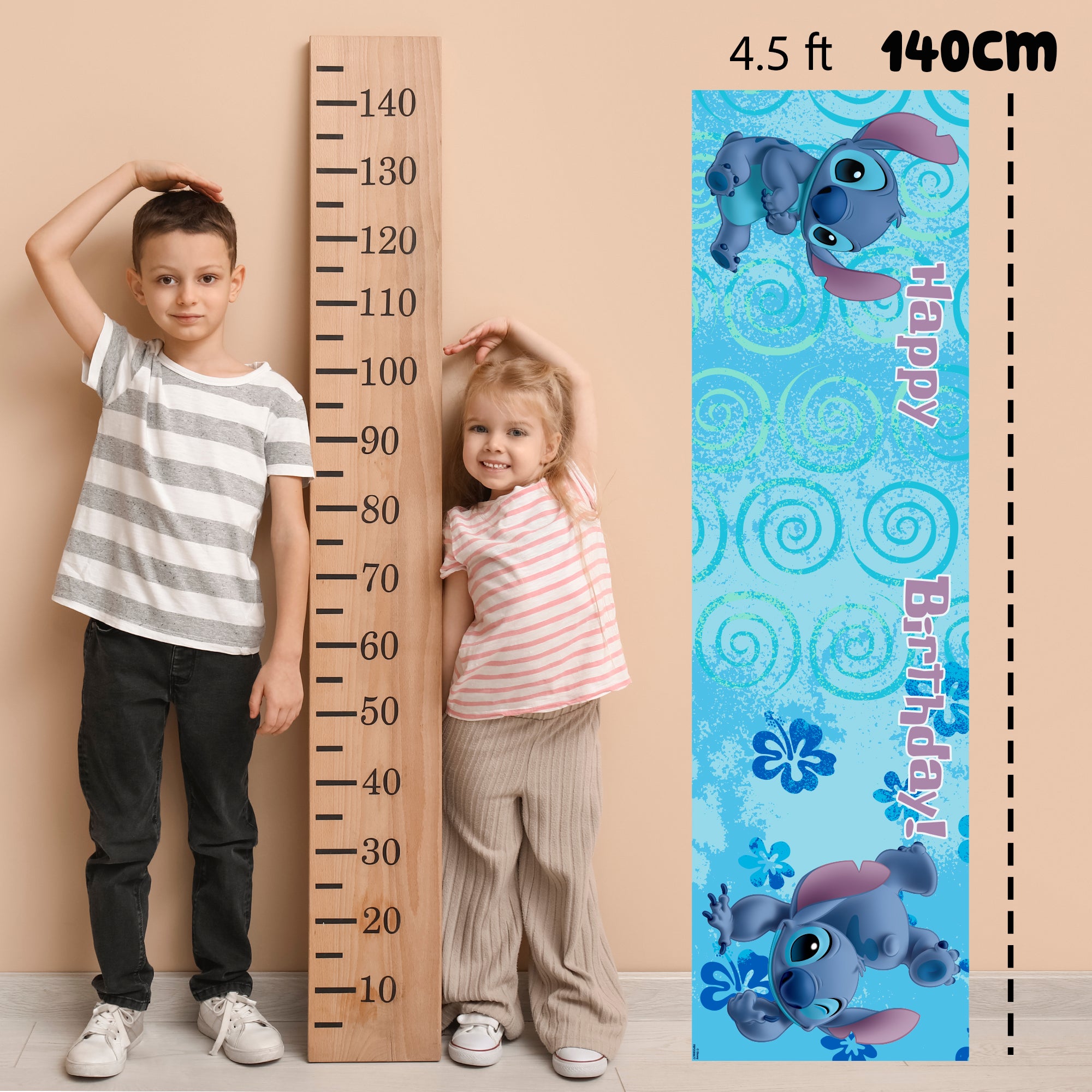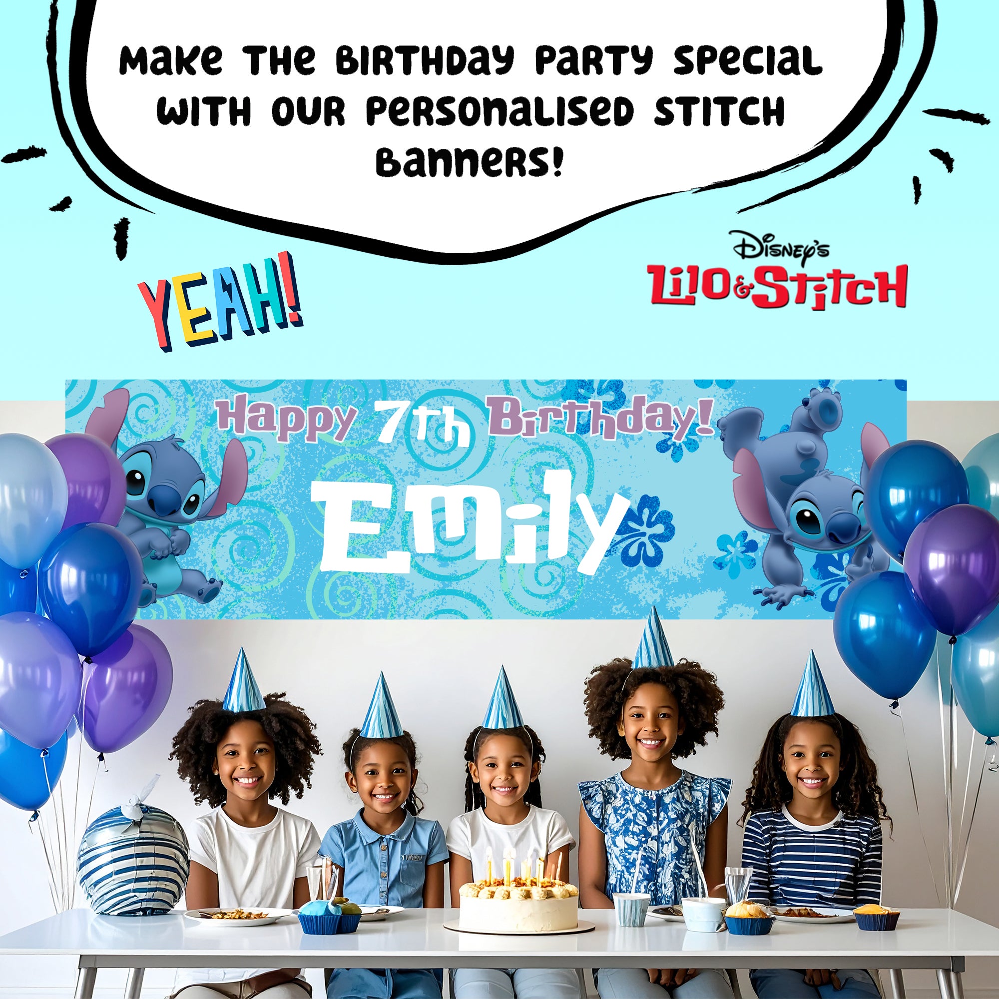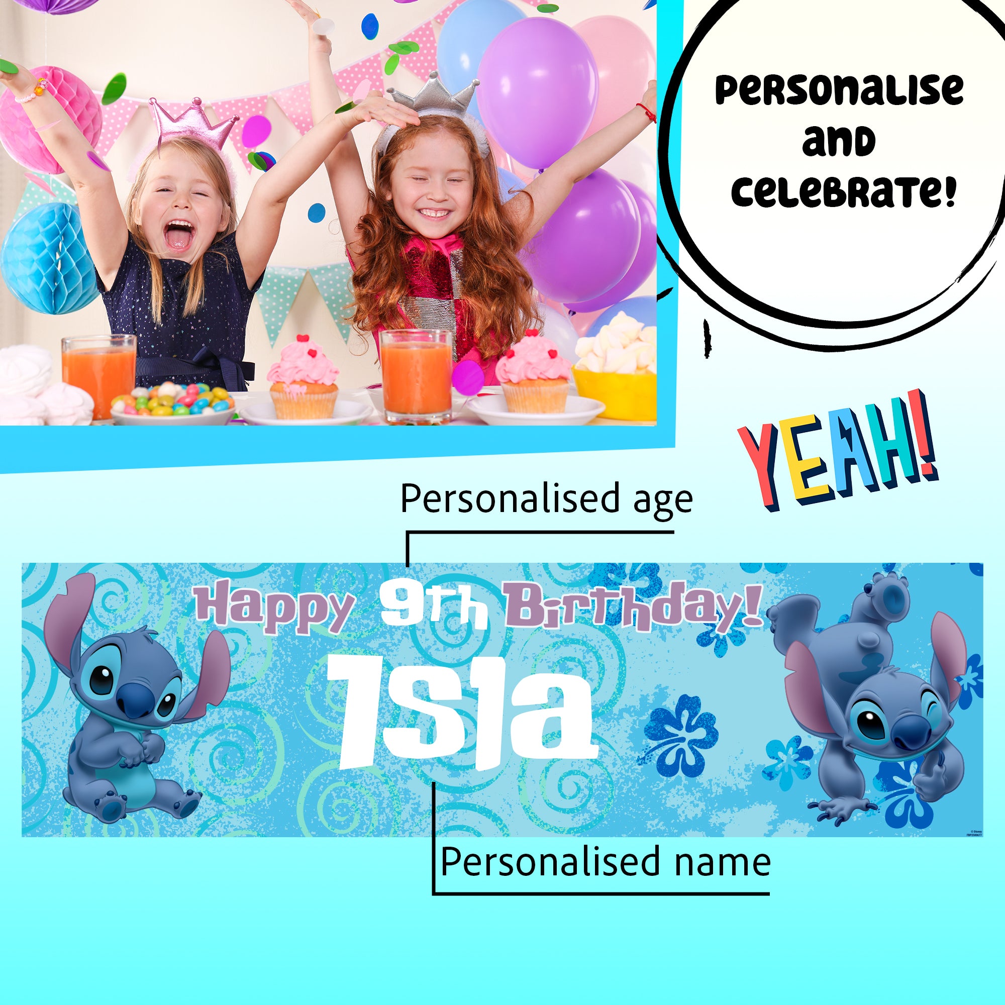 Disney Stitch Personalised Birthday Banner for Girls – Custom Name and age Party Decoration, Large 4.5ft x 1.3ft (140cm x 40cm), Stitch Theme Party Backdrop for Kids