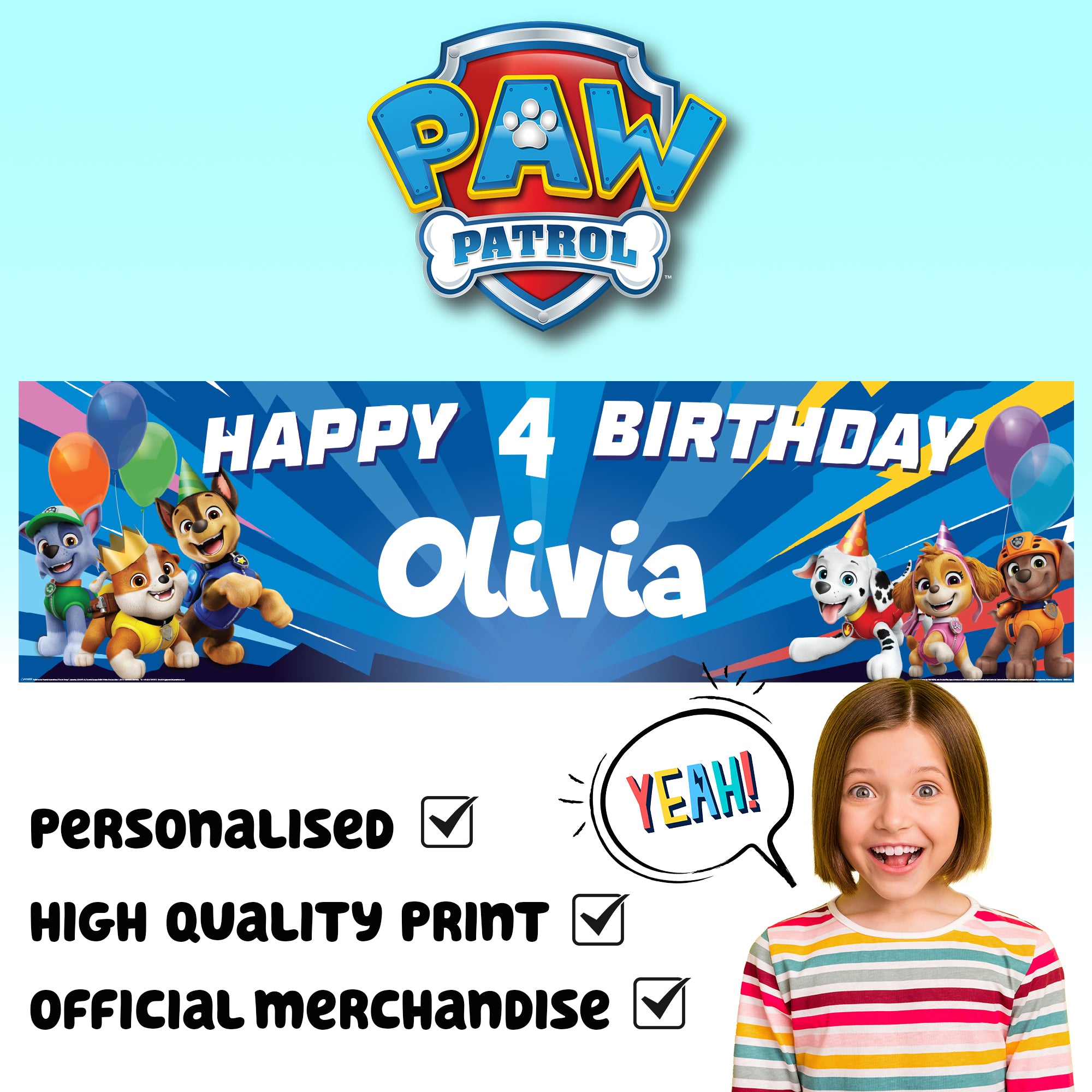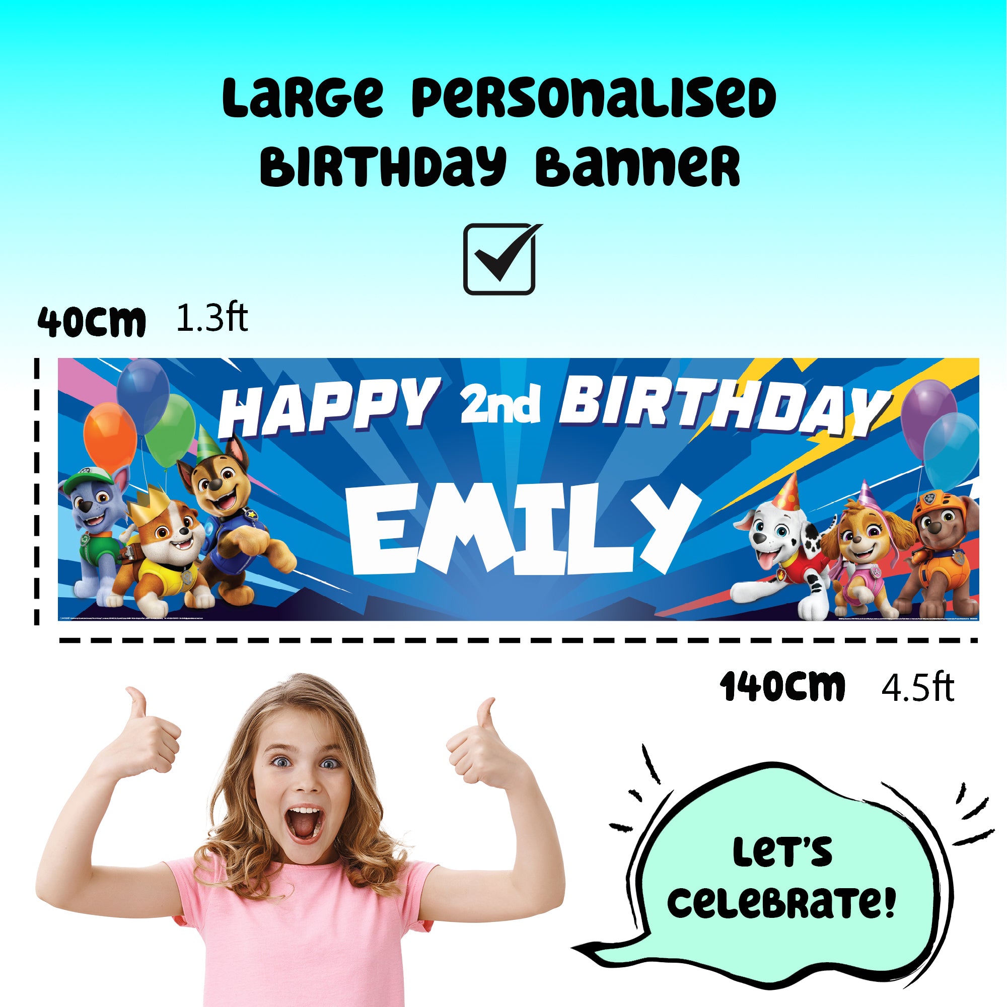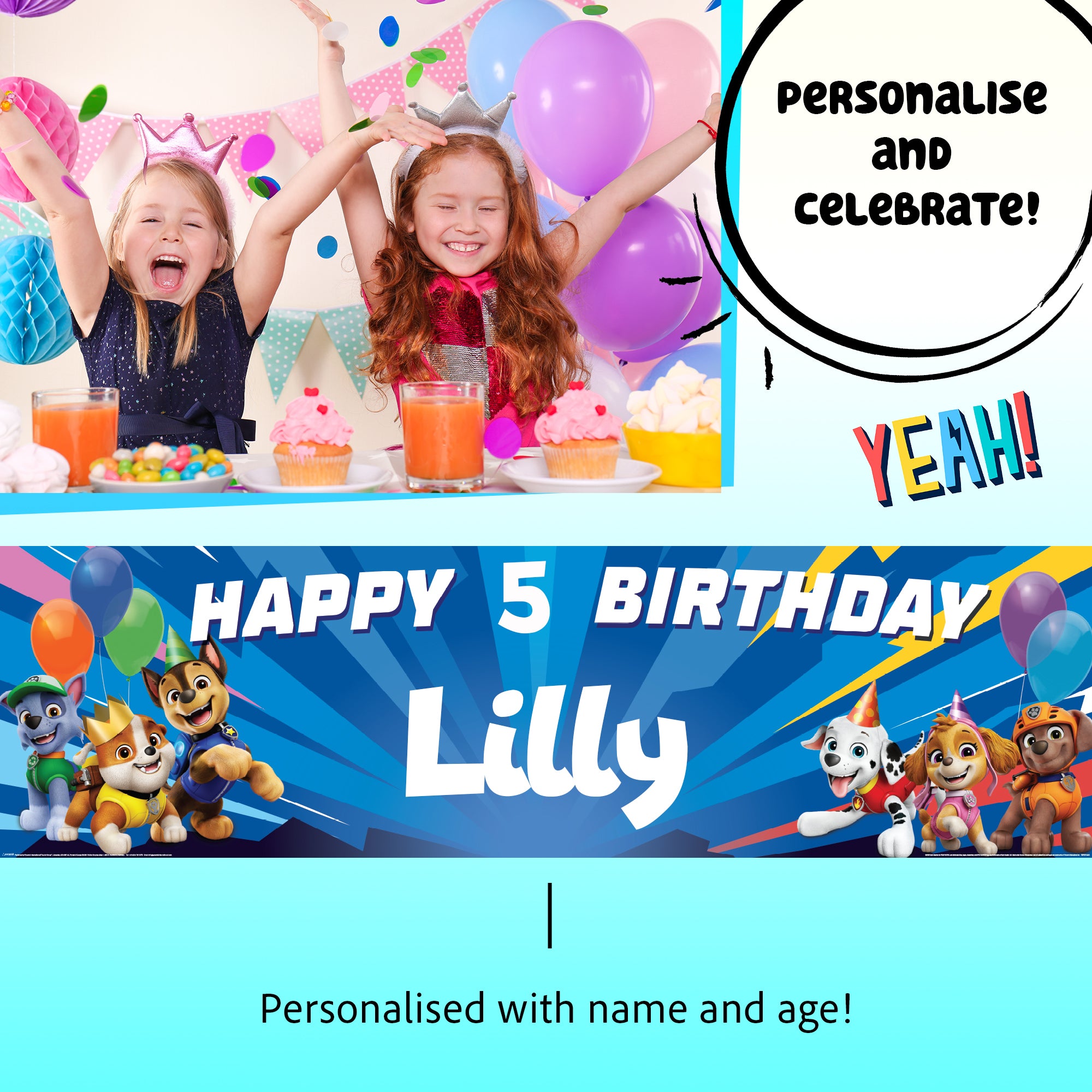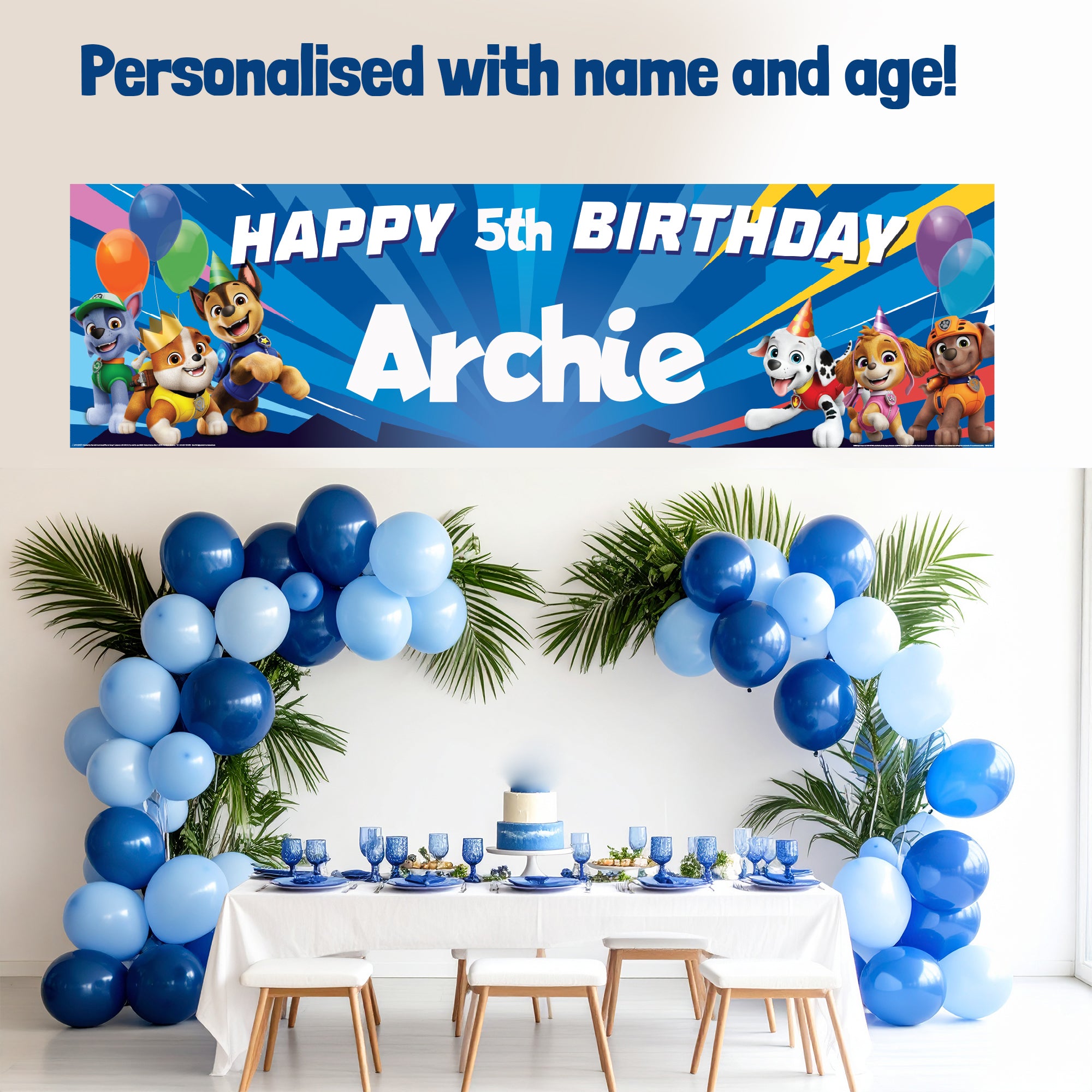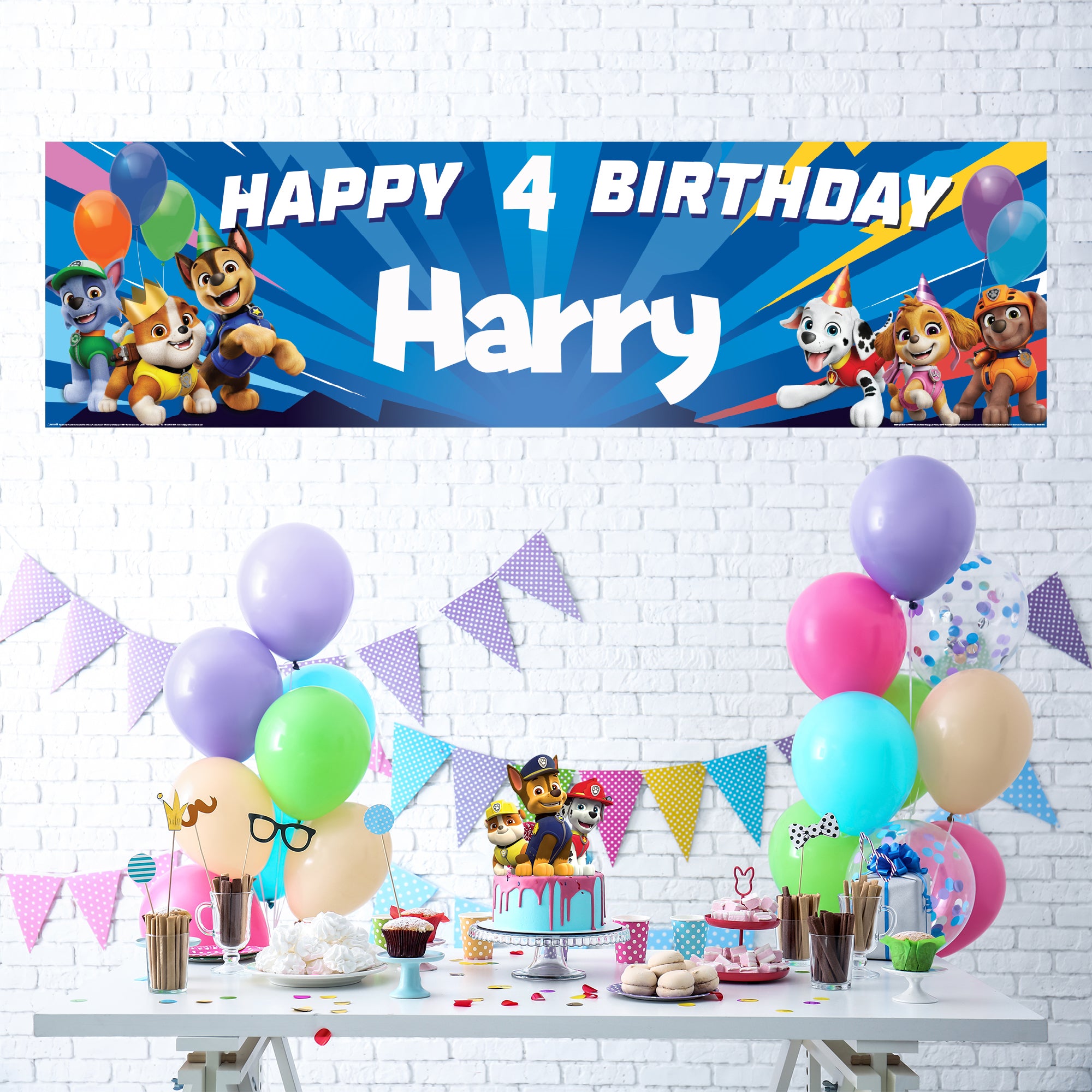 Paw Patrol Personalised Birthday Banner for Kids – Custom Name and age Party Decoration, Large 4.5ft x 1.3ft (140cm x 40cm), Theme Backdrop for Boys and Girls